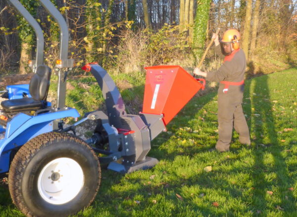 De machine is aftakasaangedreven en voorzien van een uniek bio systeem met mes en klepels waardoor deze takken maar ook biologisch tuinafval tot een diameter van 10 cm kan hakselen. Door dit unieke systeem van messen en klepels heeft de machine een grote verwerkingssnelheid maar raakt deze niet verstopt op groenafval.