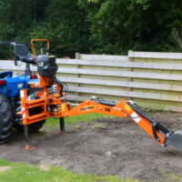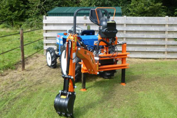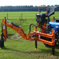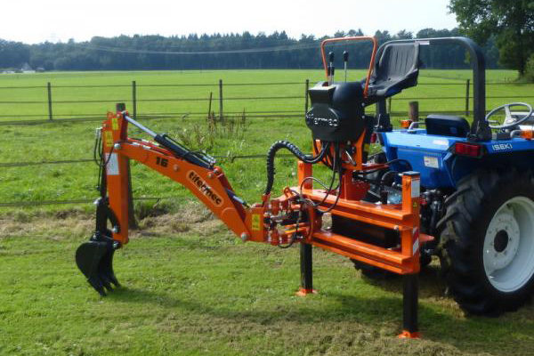 De graafarm is in de driepuntshefinrichting van de tractor te plaatsen en de aandrijving gaat door middel van de aftakas van de tractor. De machine is volledig hydraulisch aangedreven en wordt bedient met 2 joysticks.